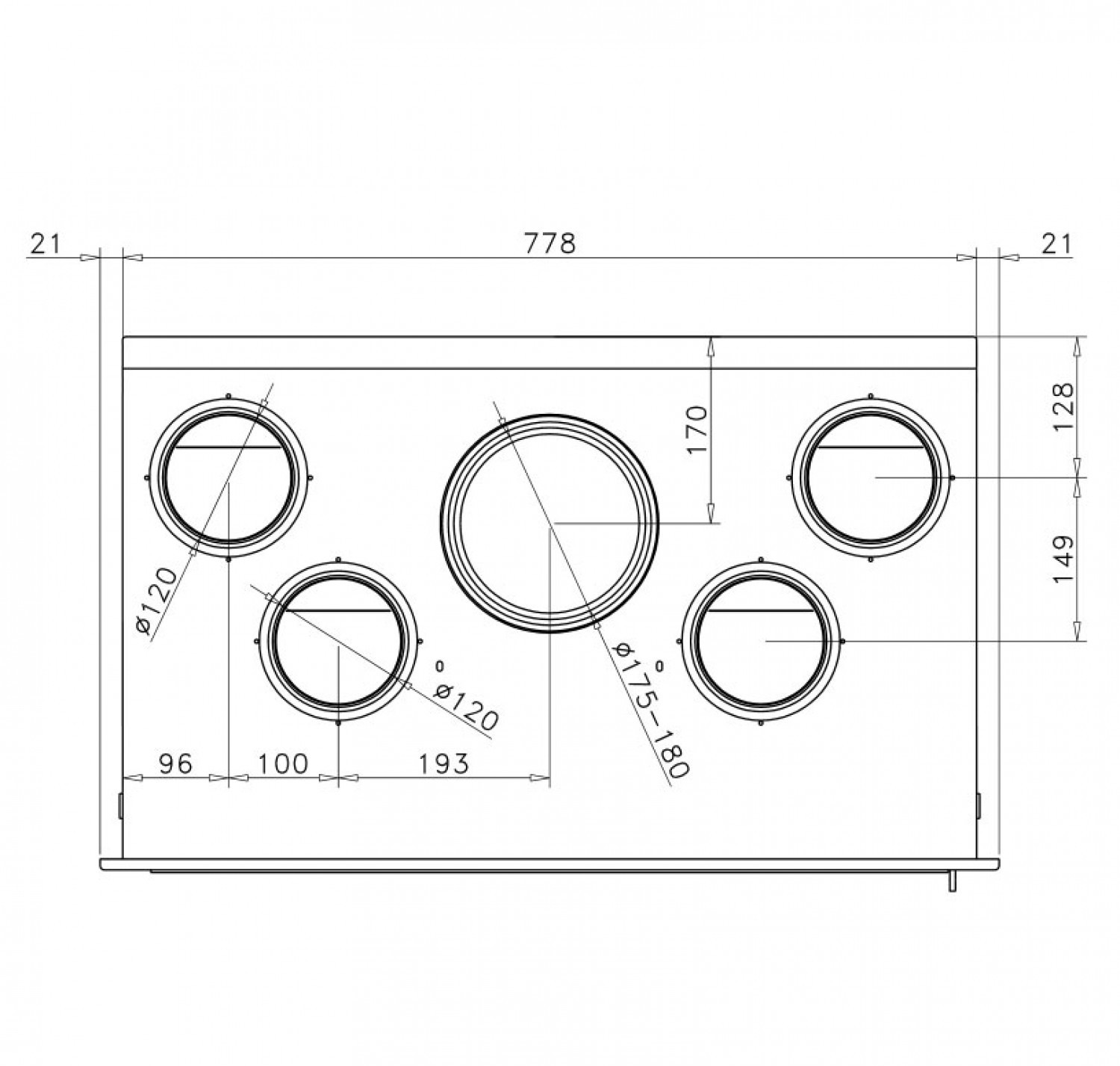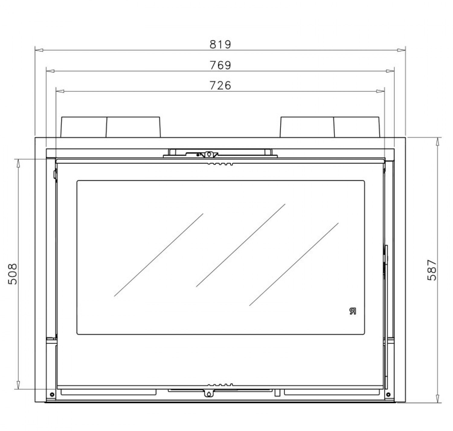 Стальной инсерт с первичным и вторичным регистром подачи воздуха, благодаря чему перед попаданием в очаг воздух сначала прогревается. Стекло - шелкография.