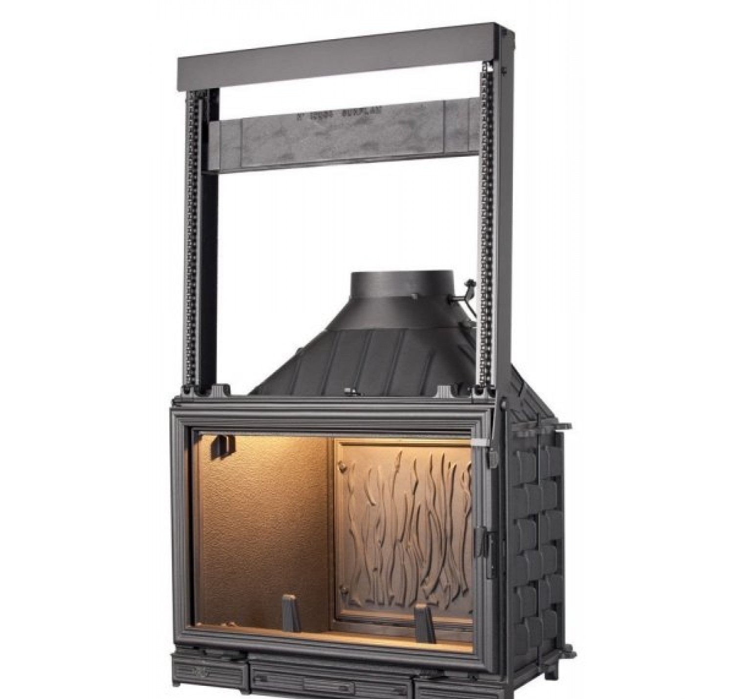 Топка sunflam с открытием двери в сторону и вверх, с дефлектором