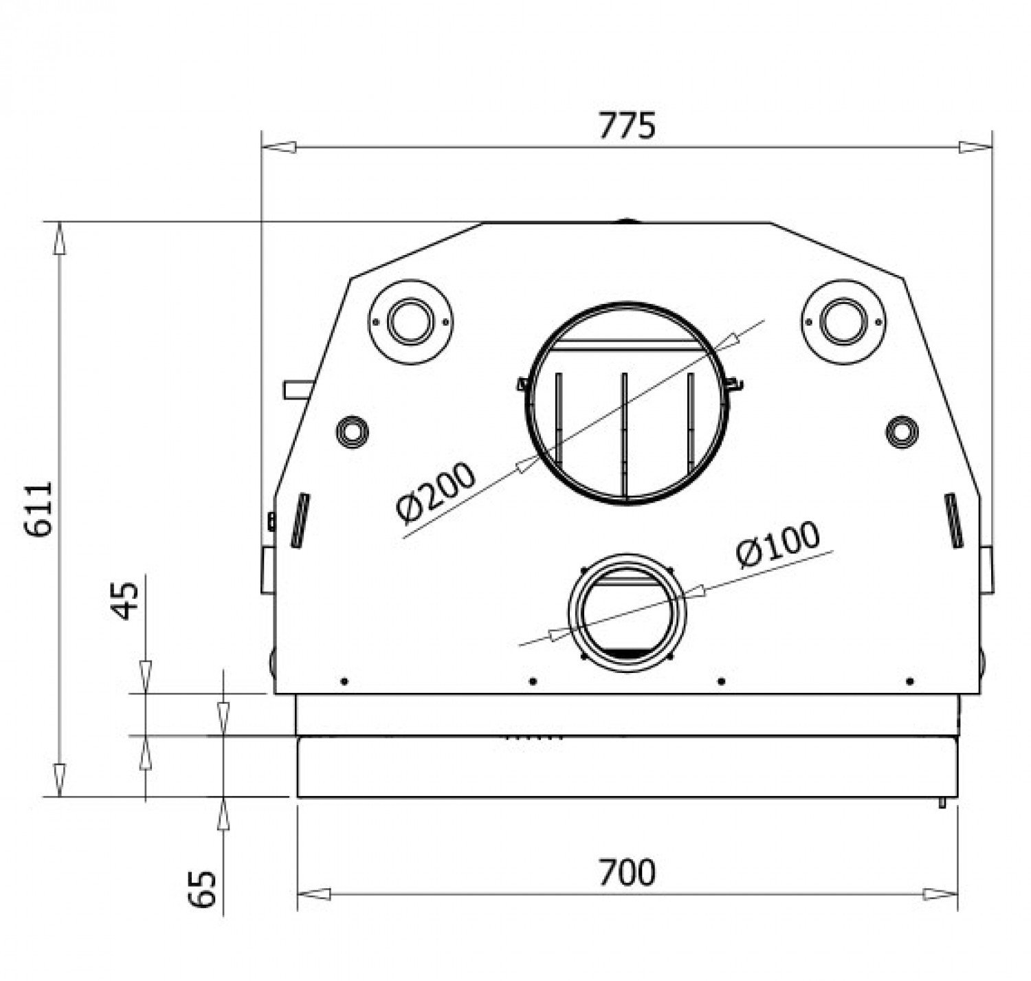 Стальная топка с водяным контуром. Для закрытой системы. Дверца открывается в сторону, камера изолированная.