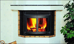 Универсальная топка изготовлена из чугуна, футирована шамотным кирпичом. Плоское стекло. Подъемная дверца.