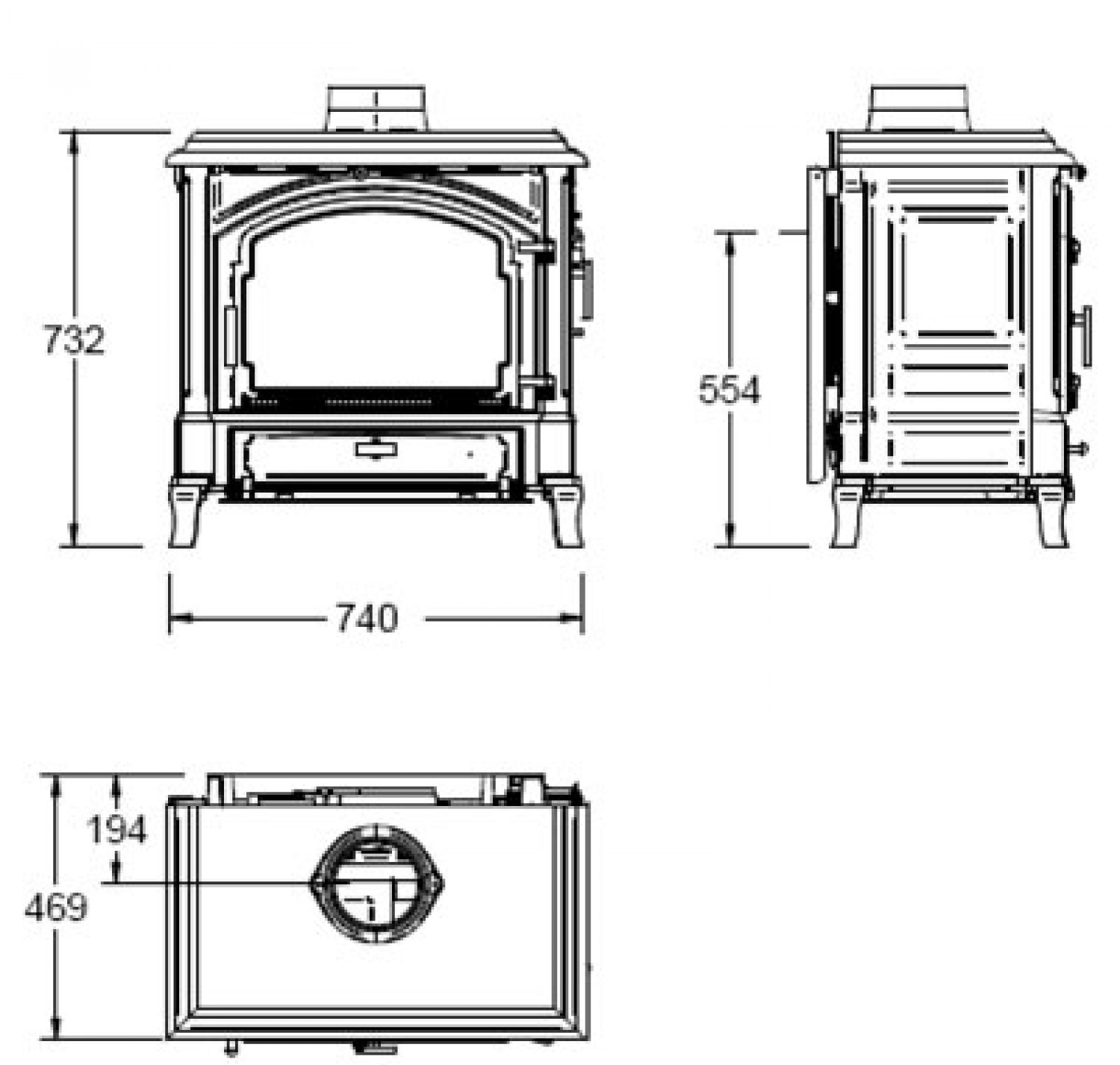 - Передняя и боковая дверцы загрузки дров