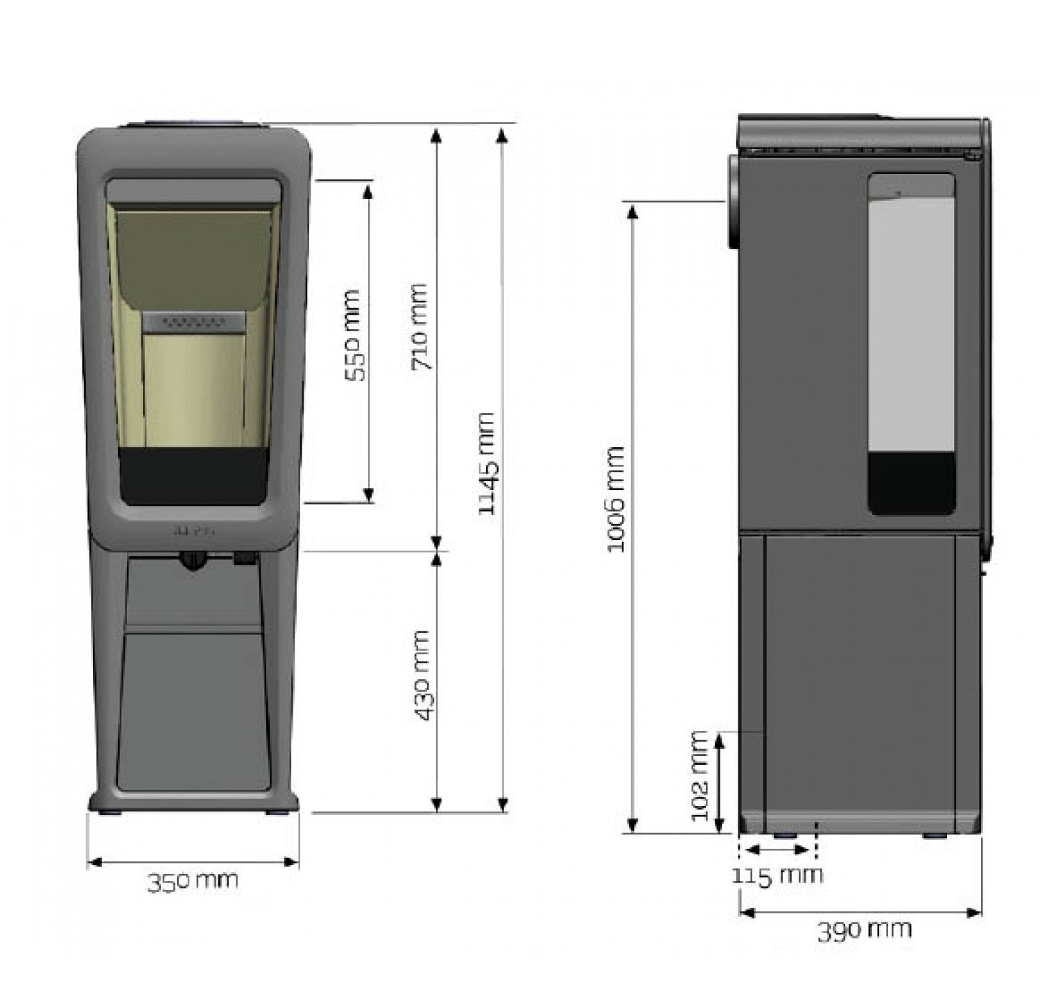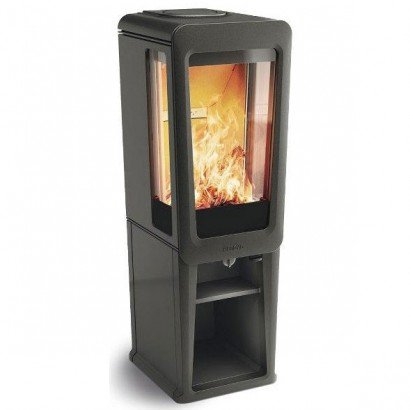 Печь-камин K 816 (Keddy) из чугуна с высокой ножкой в черном цвете с 2-мя боковыми стеклами.