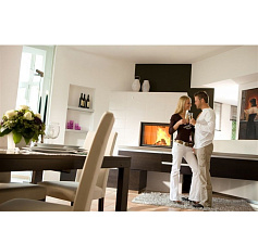 Отопительная печь с большим обзорным стеклом. С камерой вторичного дожига отработанных газов, встроенной колосниковой решеткой и зольным ящиком. На задней стороне печи расположен конвекционный кожух, предназначенный для более быстрого нагрева воздуха в помещении.