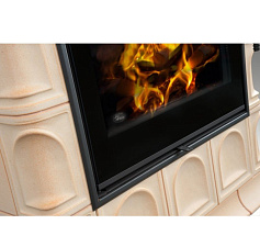 Запатентованная технология Woodbox, фирмы EFEL, нагревает подаваемый на горение воздух до 200CС и подает его медленно и равномерно в топочную камеру, что позволяет получить красивейшую игру огня, с разноцветными языками пламени.