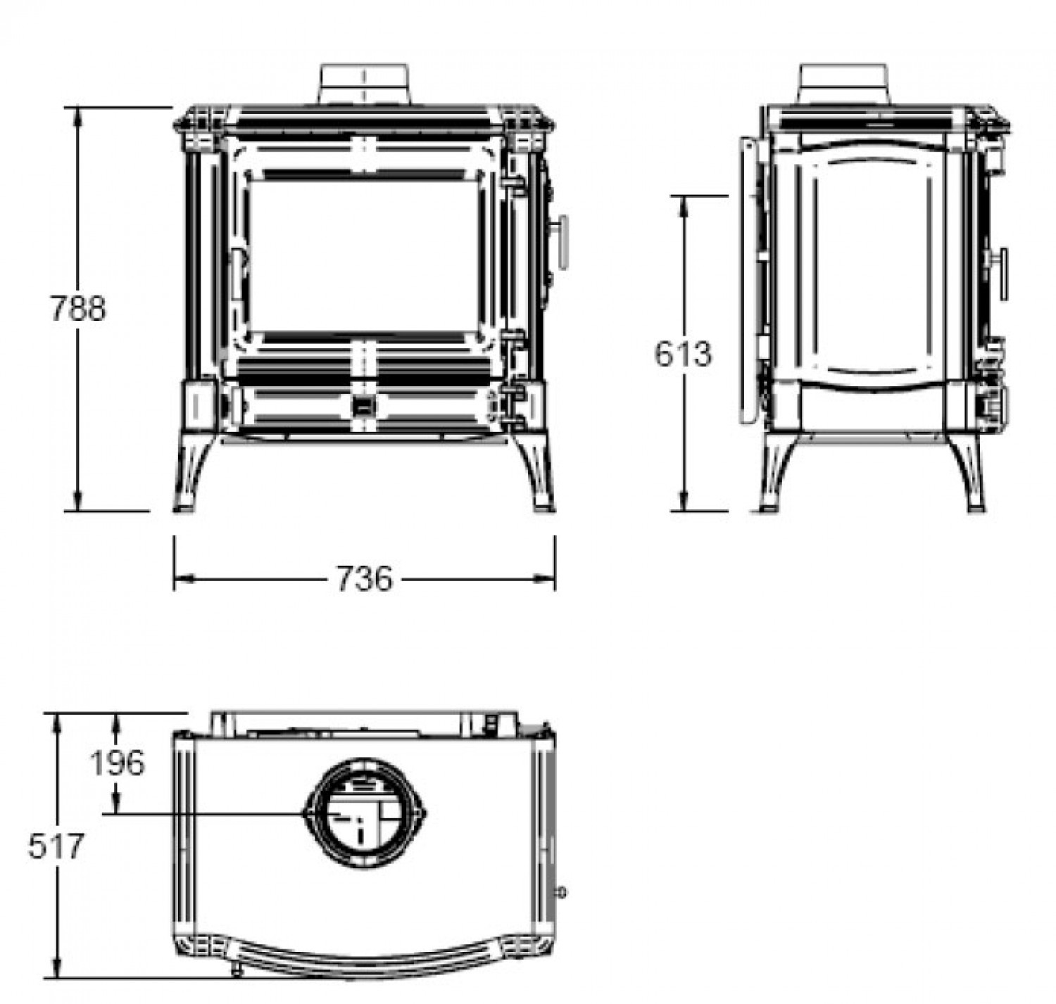 - Передняя и боковая дверцы загрузки дров