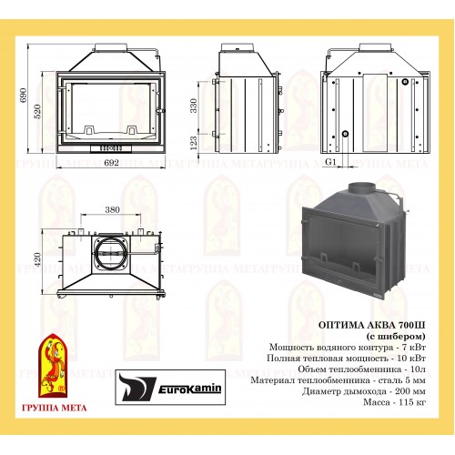 Чугунная топка Мета Eurokamin Оптима 700Ш Аква