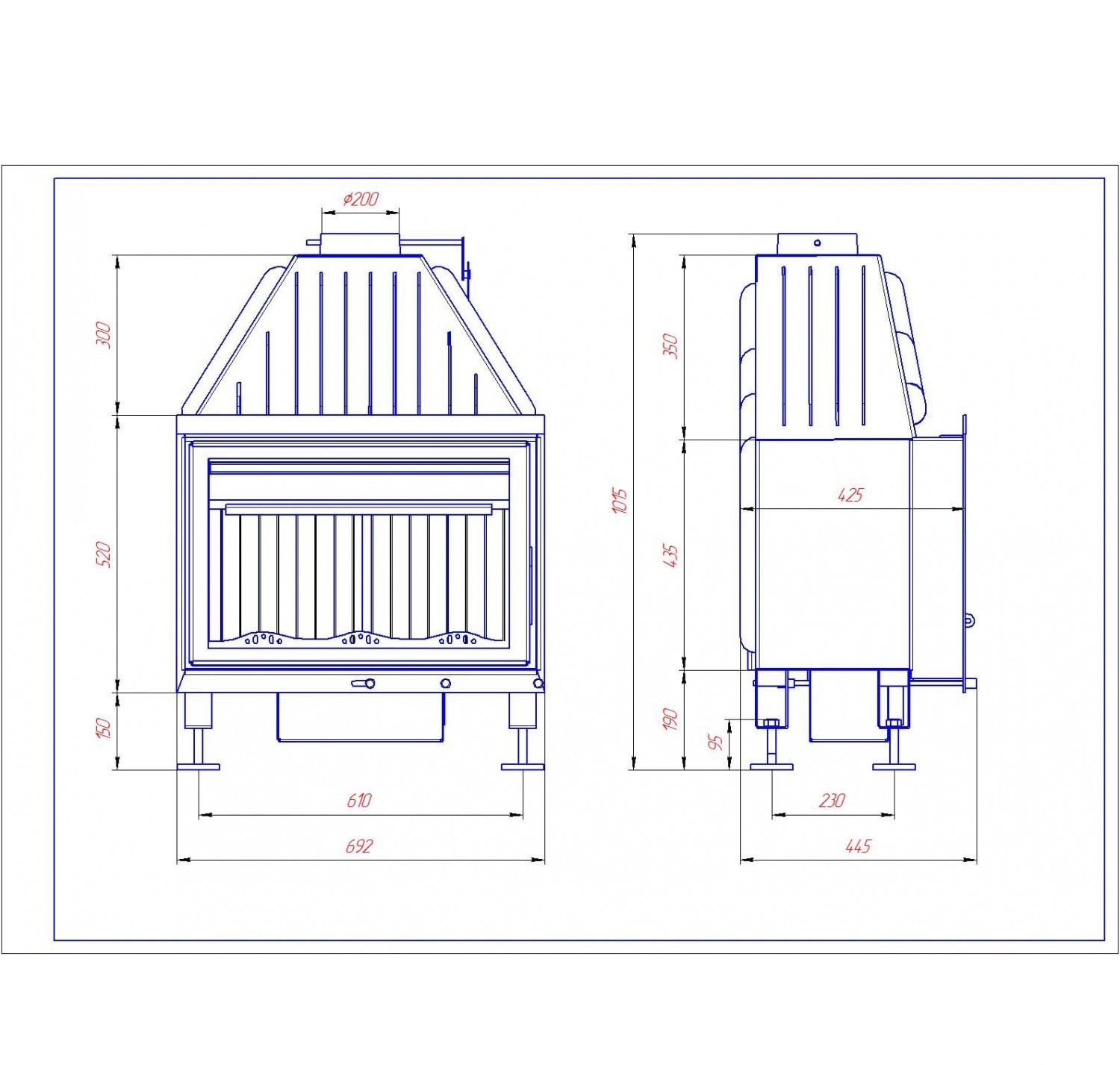 Экокамин альфа 700, диаметр дымохода 200 мм