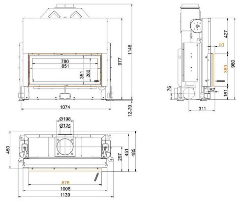 Топка AK 38/86 с подъёмом с одним прямым стеклом.