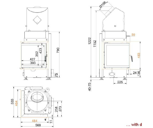 • Диаметр дымохода, (мм)