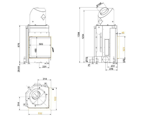 Дополнительная растопочная дверца в задней части топки DHT