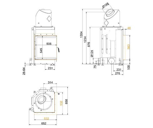 Топка Eck-K 57/52/52 без подъема, с одним стеклом