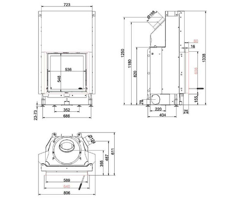 Топка КК 57/55 с подъемом с одним плоским стеклом - 1 шт.