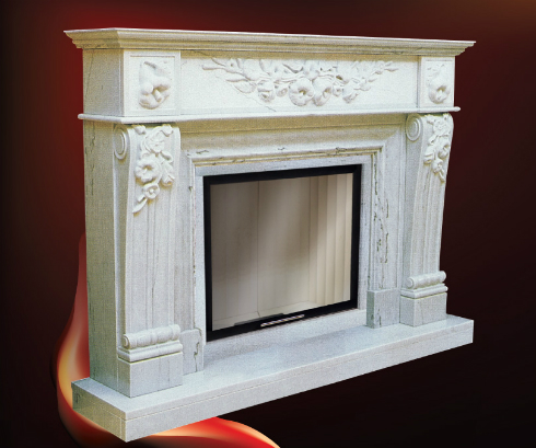 Классический мраморный камин. Декорирован резными элементами на цветочную тему.