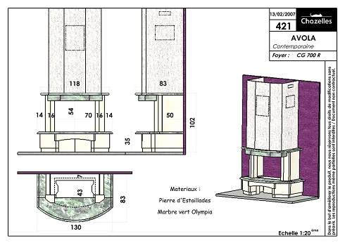 Цена указана за камин в стандартном исполнении (см. чертеж) из указанных материалов без топки.