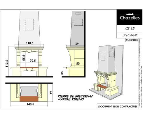Цена указана за камин в стандартном исполнении (см. чертеж) из указанных материалов без топки.