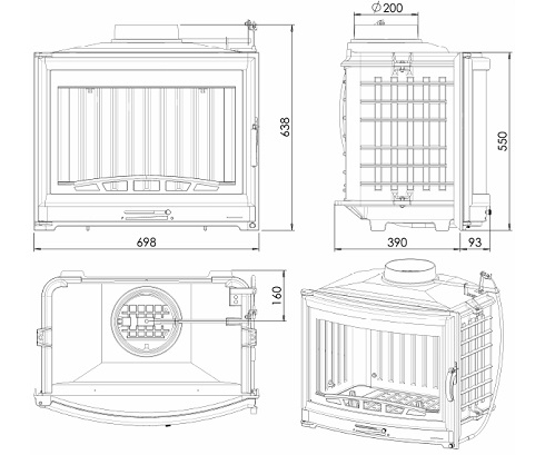 Полностью чугунная топка с боковым открытием двери.