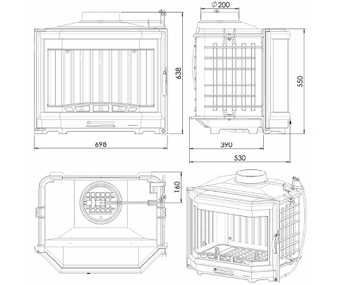 Полностью чугунная топка с боковым открытием двери.
