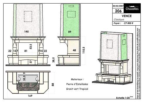 Цена указана за камин в стандартном исполнении (см. чертеж) из указанных материалов без топки.