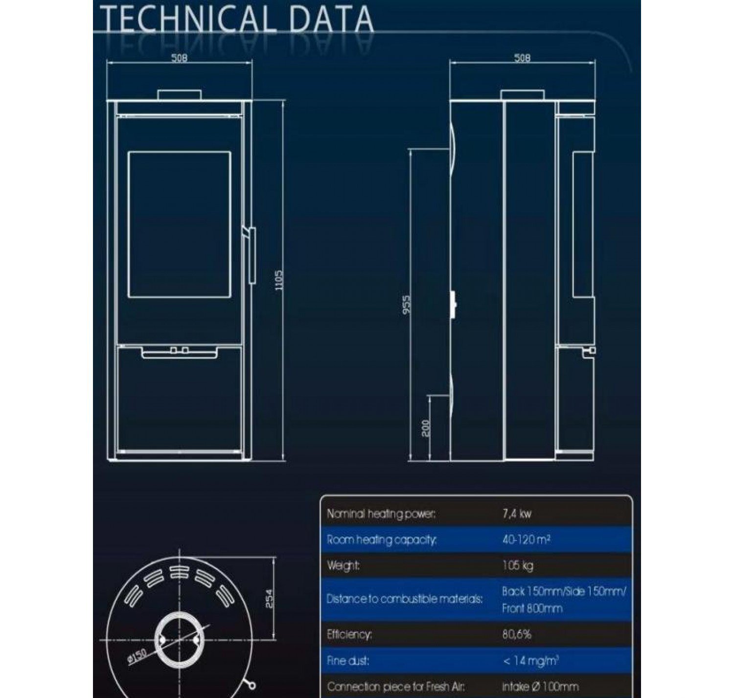 • Диаметр дымохода, (мм)