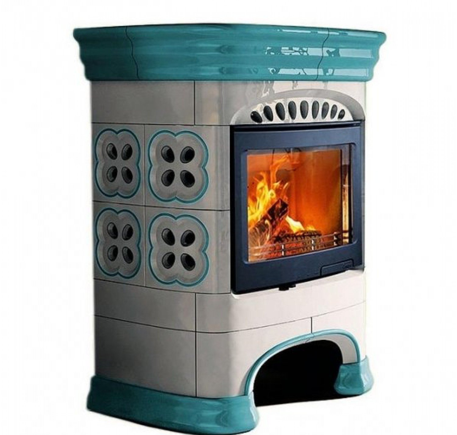 Варианты установки: пристенный (задняя стенка не облицована кафелем) и центральный (кафель по все окружности печи). Для подключения к дымоходам также дополнительно можно приобрести керамические трубы, которые изготовлены в едином решении с камином.