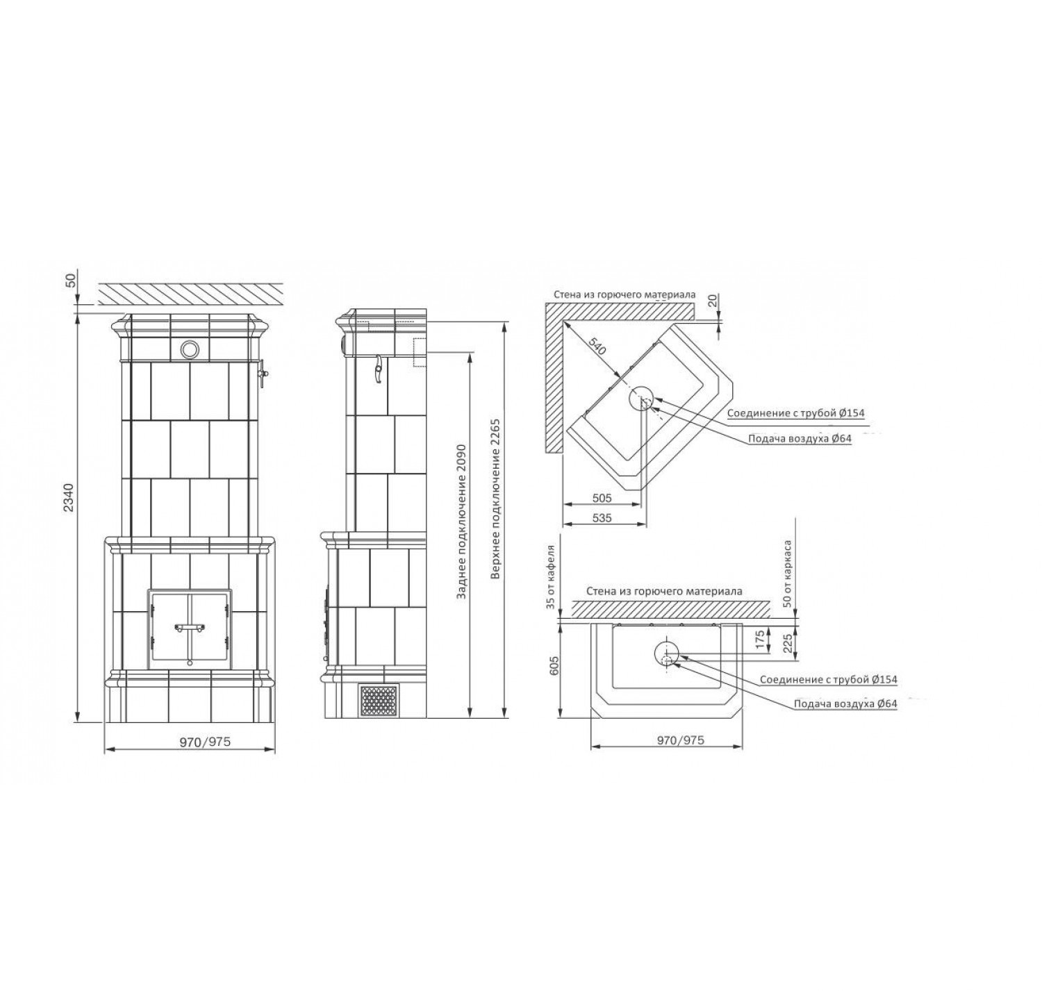 Как и во всех печах Contura, в модели Safir Classic 205 используются длинные дымоходы. Они обеспечивают очень высокий коэффициент полезного действия, или энергоотдачи. Safir Classic 205 можно устанавливать в углу или напротив прямой стены.