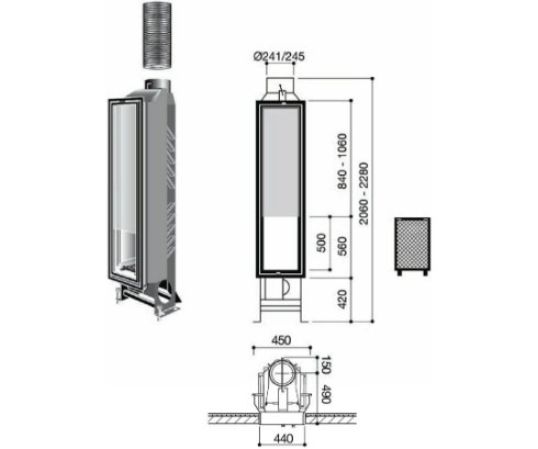 Камин производителя Focus, представляющий собой единое целое, самоподдерживаемая конструкция из стали марки Indaten (140 кг), широкий фасад с боковыми петлями и постоянно открытой нижней частью, что делает из данной модели камин с открытой топкой. Вентиляция обеспечивается засчет большого пирокерамического стекла. Рама обеспечивает изоляцию от окружающих поверхностей. Верхние и нижние вентиляторы обязательны.