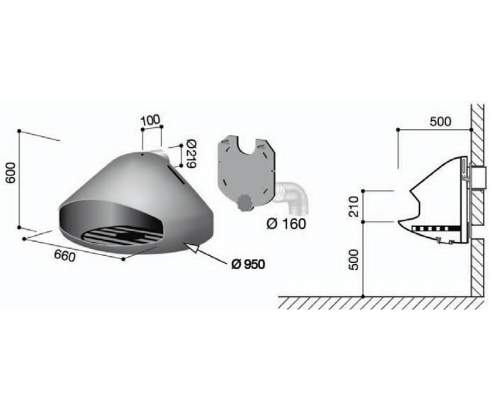Топка в комплектации с соединительной пластиной, которая также служит для изоляции топки от стены, теплообменник с двойным основанием для вентиляции.