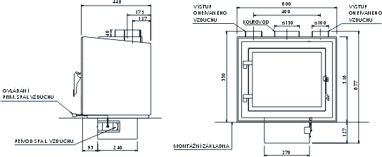 - Диаметр дымохода, (мм) 150