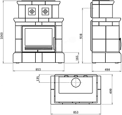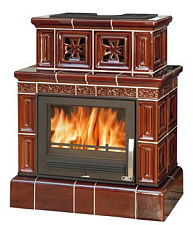 Предлагаем камины необычной формы - с высокой кафельной надстройкой над камерой сгорания.