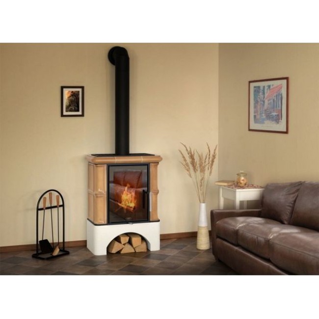 Топка оснащена системой «двойного дожига». Первичный воздух подается прямо на дрова. Уменьшая или увеличивая приток воздуха можно управлять горением. Уменьшать пламя, когда в комнате тепло и нужно поддержать температуру. Это помогает сократить расход дров. Вторичный воздух подается через специальные каналы в верхнюю часть топки, где скапливаются дымовые газы. Под воздействием кислорода частицы, которые содержатся в отходящих газах, воспламеняются и сгорают. Токсичный угарный газ превращается в безобидный углекислый. Система «двойного дожига» делает эксплуатацию печи безопасней и проще. Меньше дымовых частиц - меньше копоти и сажи и меньше чисток дымохода и топки). При этом вторичный дожиг еще и смотрится красиво, его сравнивают с северным сиянием и метеоритным дождем.