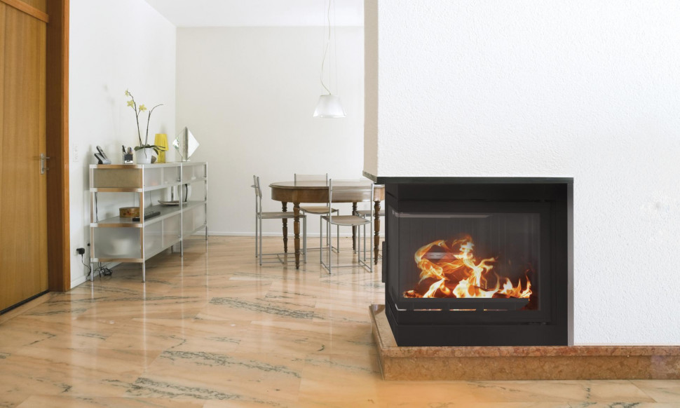 - Современная технология очистки стекла, позволяющая ему оставаться чистым и прозрачным на всех стадиях горения. Воздух поступает в топку из воздуховода в нагревательную камеру, что обеспечивает высокую температуру в топке и способствует самоочистке стекла.