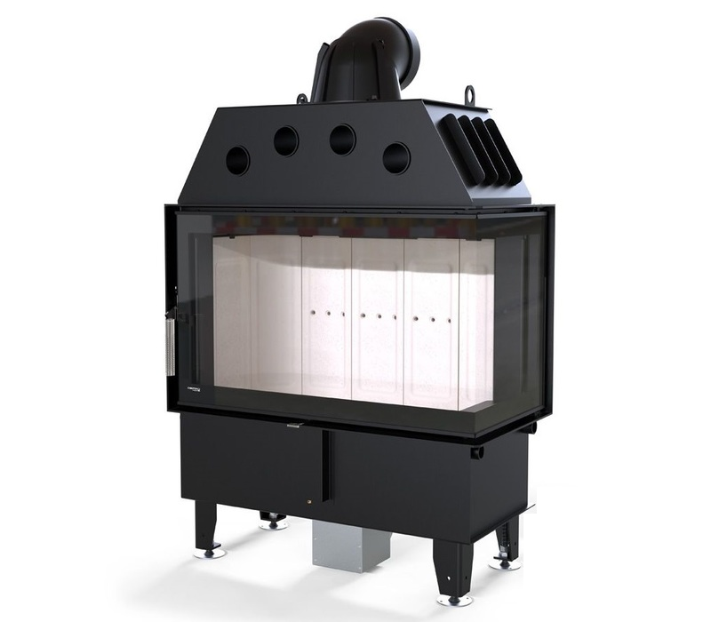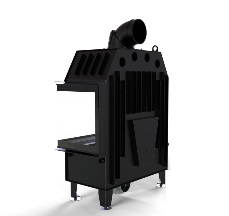 Модель изготовлена из стали с порошковым покрытием. Устройство с центральной подачей воздуха снаружи и возможностью ее регулировки. Специальная конструкция на трубе для подачи воздуха в топку, дает возможность изменить направление подачи воздуха на боковое. Плотно размещенные радиаторы способствуют передачи больше тепла окружающей среде, а воздуховоды повышают эффективность камина.