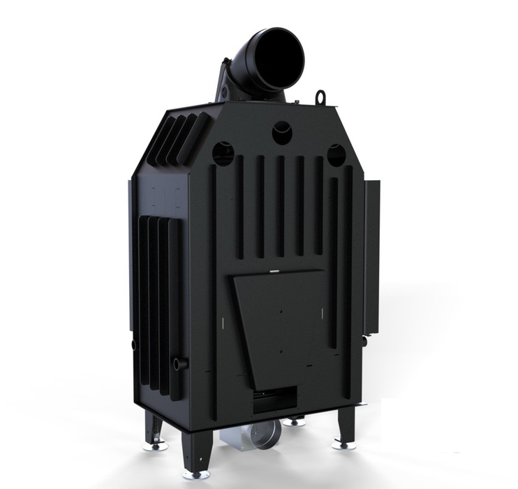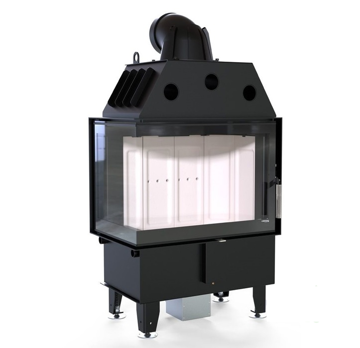 Модель изготовлена из стали с порошковым покрытием. Устройство с центральной подачей воздуха снаружи и возможностью ее регулировки. Специальная конструкция на трубе для подачи воздуха в топку, дает возможность изменить направление подачи воздуха на боковое. Плотно размещенные радиаторы способствуют передачи больше тепла окружающей среде, а воздуховоды повышают эффективность камина.