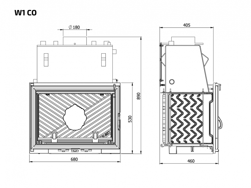 Топка W1CO-18 кВт выполнена из толстого чугуна класса EN-GJL- 200 и оборудована подводом наружного воздуха в камеру сгорания, встроенным шибером для регулировки процесса горения и дымоотведения, и более точной регулировкой подачи воздуха через нижнюю часть дверцы под колосниковую решетку, открыв ее на максимум, вы подаете к дровам оптимальное количество воздуха для быстрого розжига.
