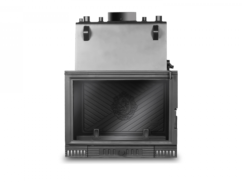 • Дополнительная жаростойкая плита, защищающая тыльную сторону от прогорания толщиной 20 мм декорирована гербом со львом.