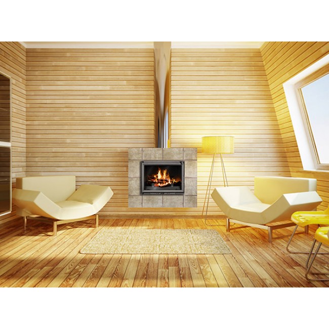 Для защиты корпуса каминной топки в конструкции топочной камеры также установлена двойная задняя стенка с красивым и объёмным рисунком, которая обеспечивает долговечность каминных топок KAWMET.