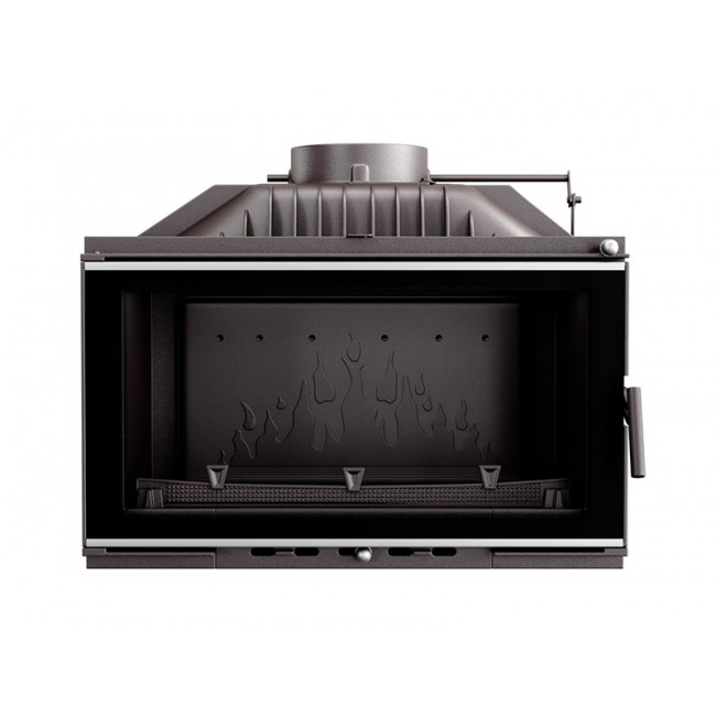 Для защиты корпуса каминной топки в конструкции топочной камеры также установлена двойная задняя стенка с красивым и объёмным рисунком, которая обеспечивает долговечность каминных топок KAWMET.