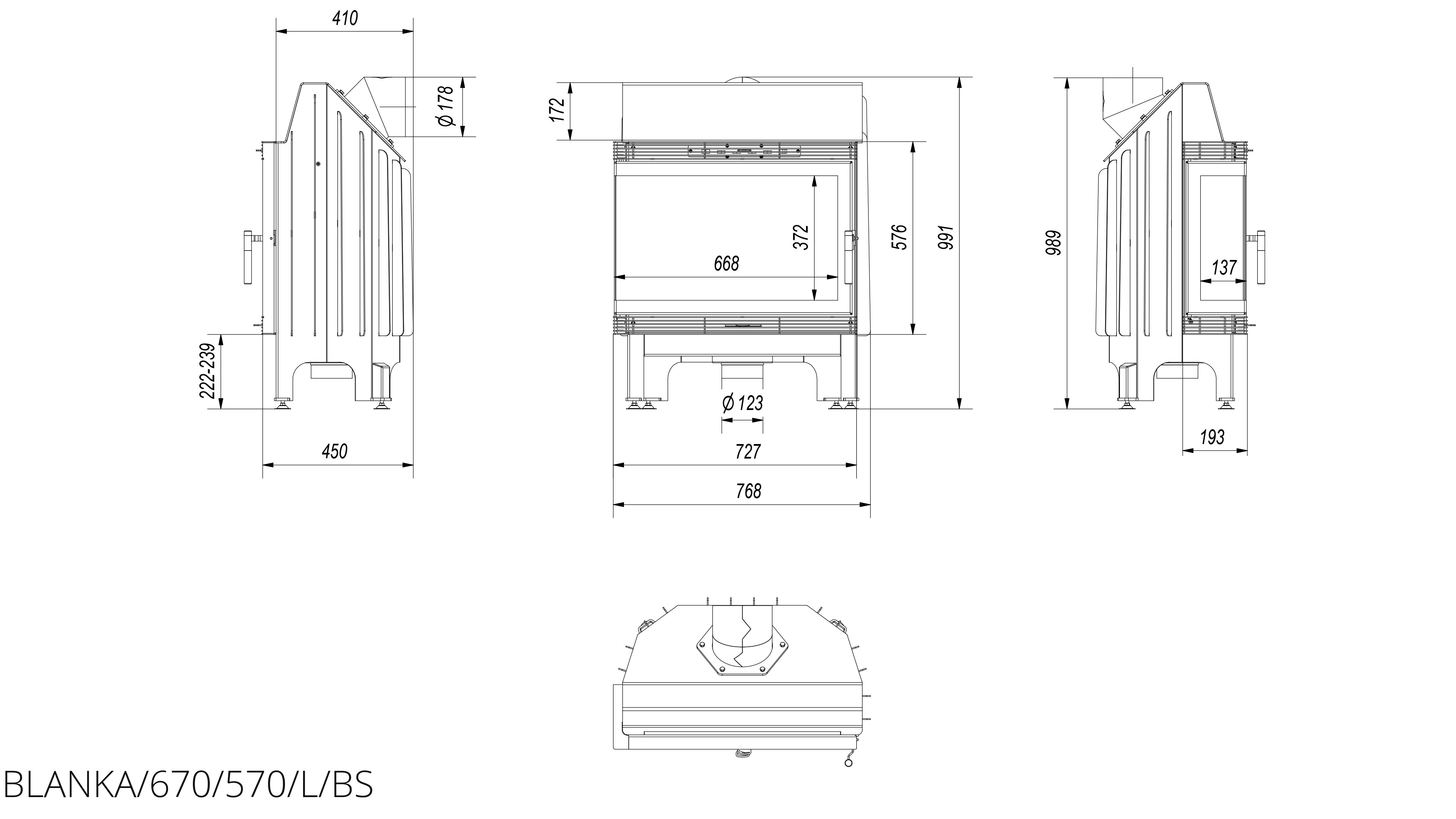 Каминная топка Kratki Blanka/670/570/L/BS