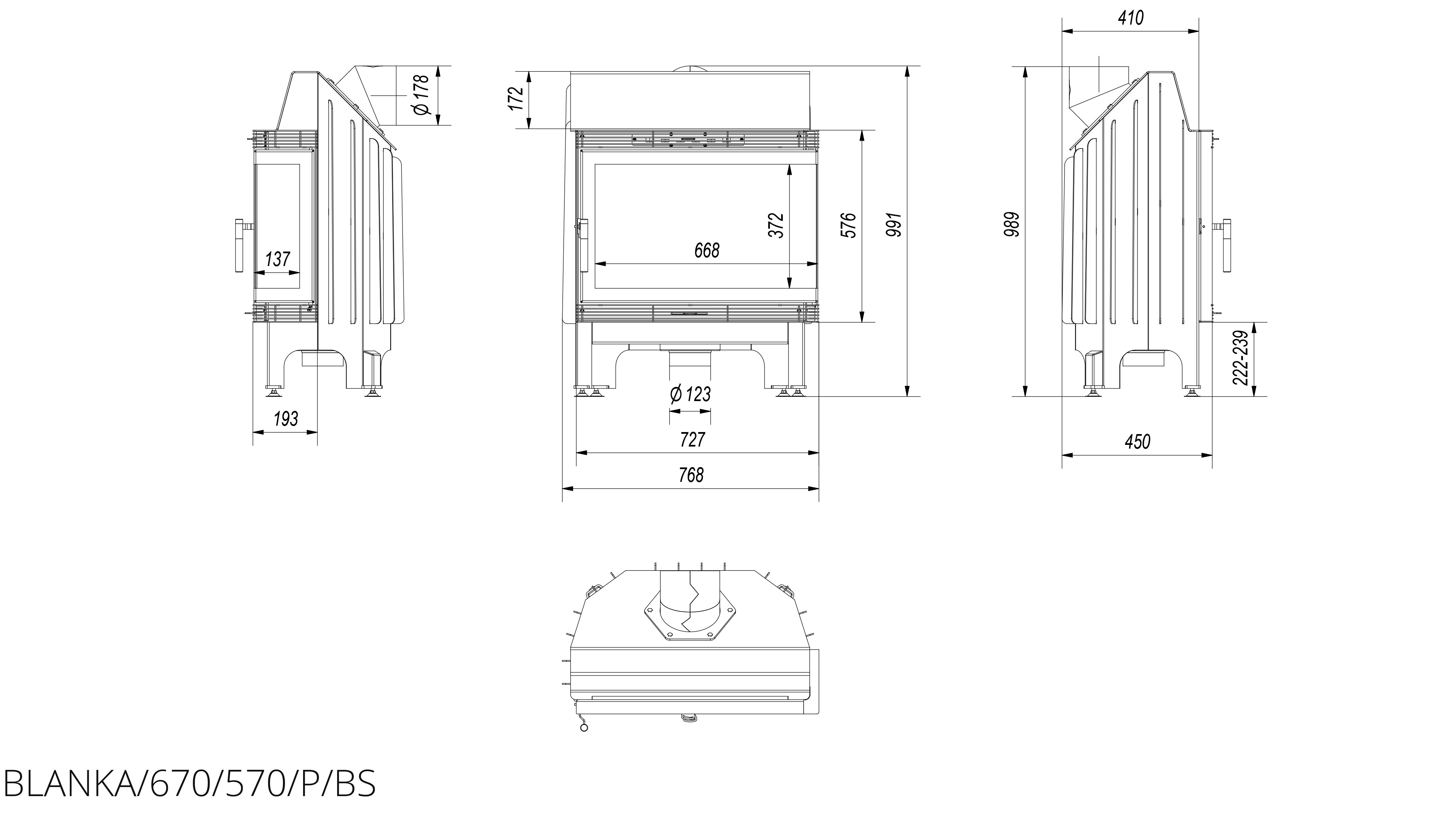 Каминная топка Kratki Blanka/670/570/P/BS (Г-образное стекло справа) с горизонтальной камерой сгорания, благодаря своему интересному дизайну и изящному силуэту - отличное решение в современных интерьерах.