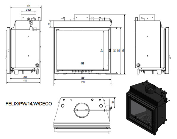 Каминная топка Kratki Felix/PW/14/W/Deco