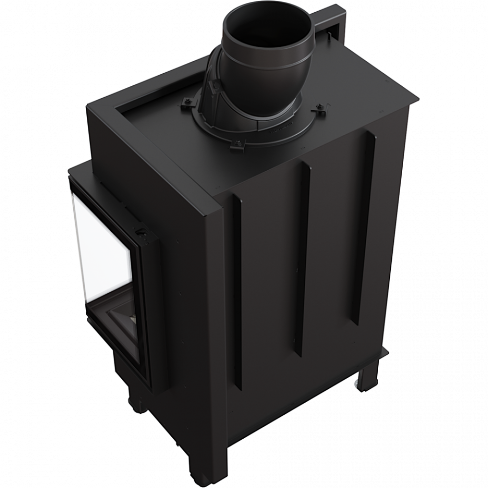• Модель оснащена подвижным дымоходным отверстием, так что во время монтажа нет необходимости покупать дополнительные колена. Можно легко подобрать угол подключения топки к каминной инсталляции.