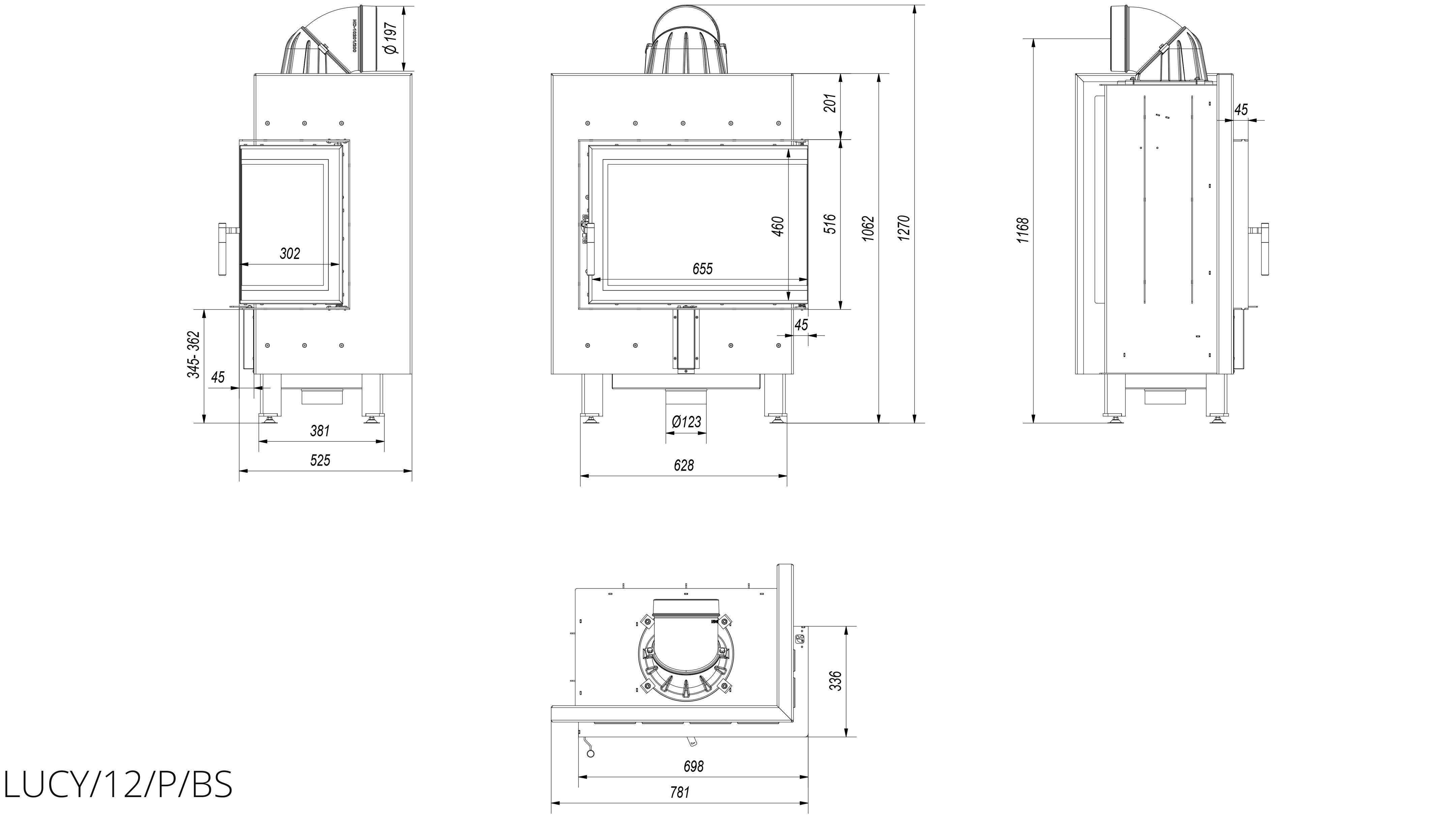 Каминная топка Kratki Lucy/12/P/BS (Г-образное стекло справа) интересной формы, с боковым стеклом. Благодаря двустороннему созерцанию огня и изящной передней рамке она отлично подходит под стилистику современных интерьеров.
