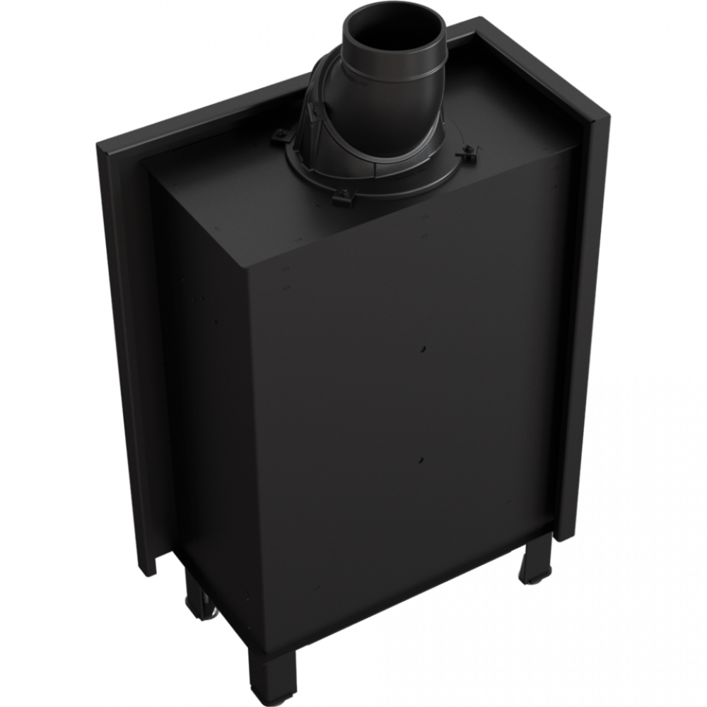 - Кроме того, для топки используется система чистого стекла (воздушная завеса), то есть воздух подается прямо на стекло через систему каналов, расположенных по бокам камина. Таким образом, кислород поступает в верхнюю часть камеры сгорания, где происходит сгорание газов, возникших в процессе сжигания дров, что дополнительно уменьшает выброс вредного СО в атмосферу.