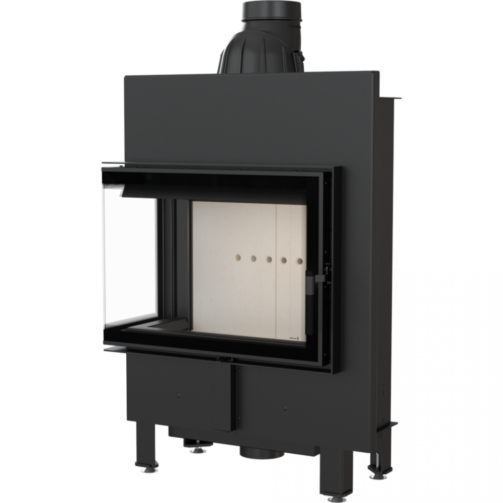 - Модель оснащена подвижным дымоходным отверстием, так что во время монтажа нет необходимости покупать дополнительные колена. Можно легко подобрать угол подключения топки к каминной инсталляции.