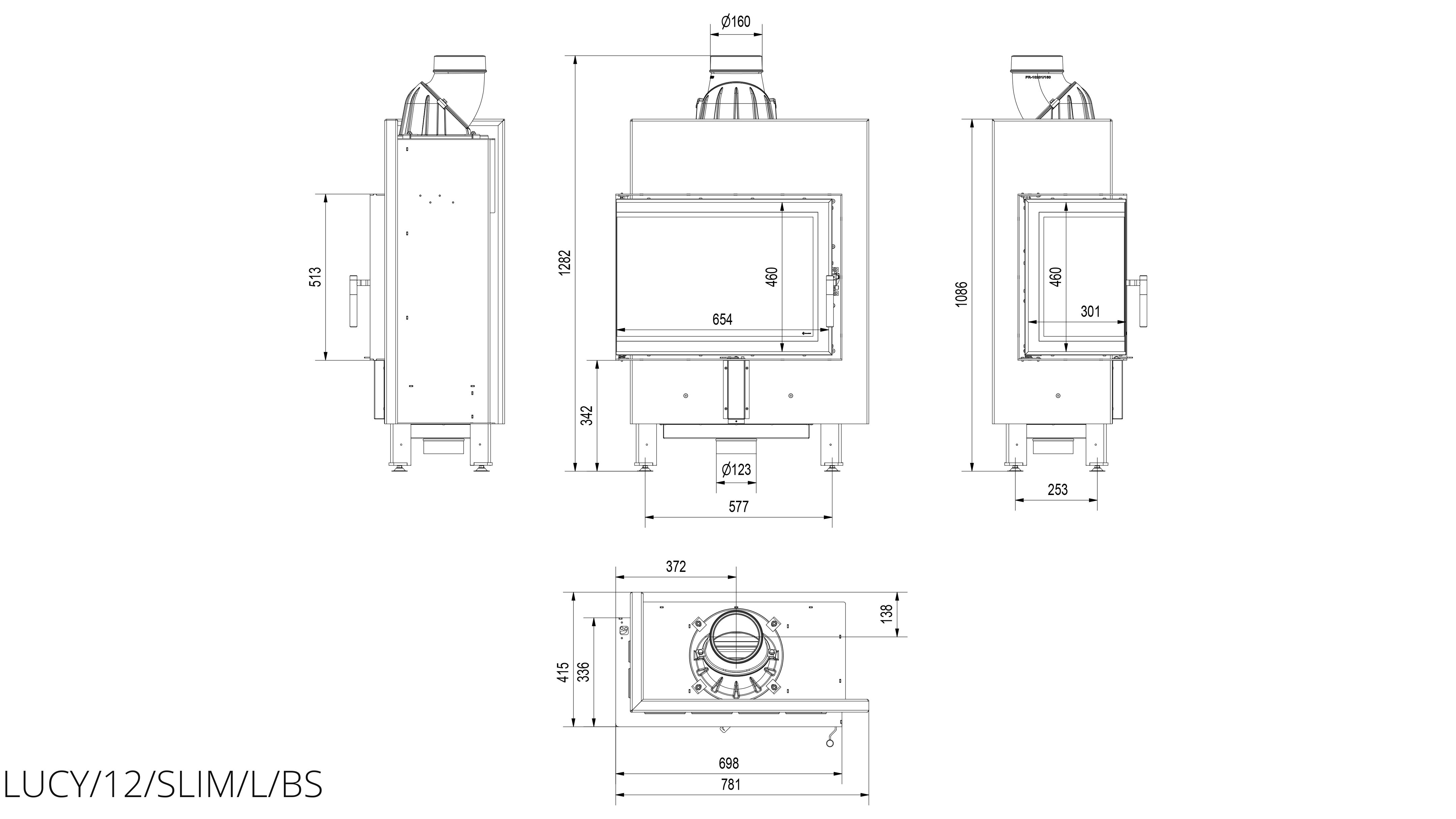 Каминная топка Kratki Lucy/12/SLIM/L/BS