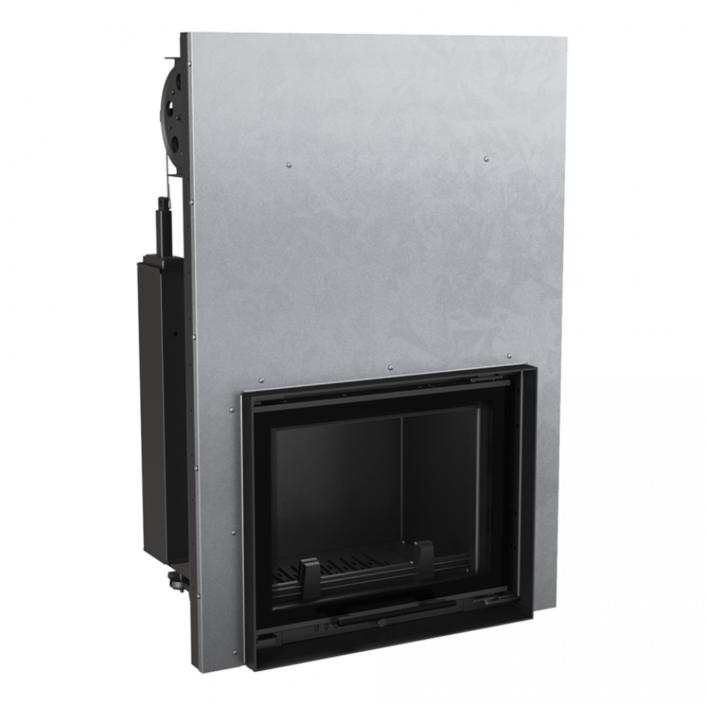 Имеет встроенный водяной контур объемом 18 литров. Это закрытый очаг с дверцей, которая открывается вверх (имеется тросовый механизм). Для изготовления данной модели использовались жаропрочные материалы: чугун для камеры сгорания и дверцы и специальная котловая сталь для корпуса.