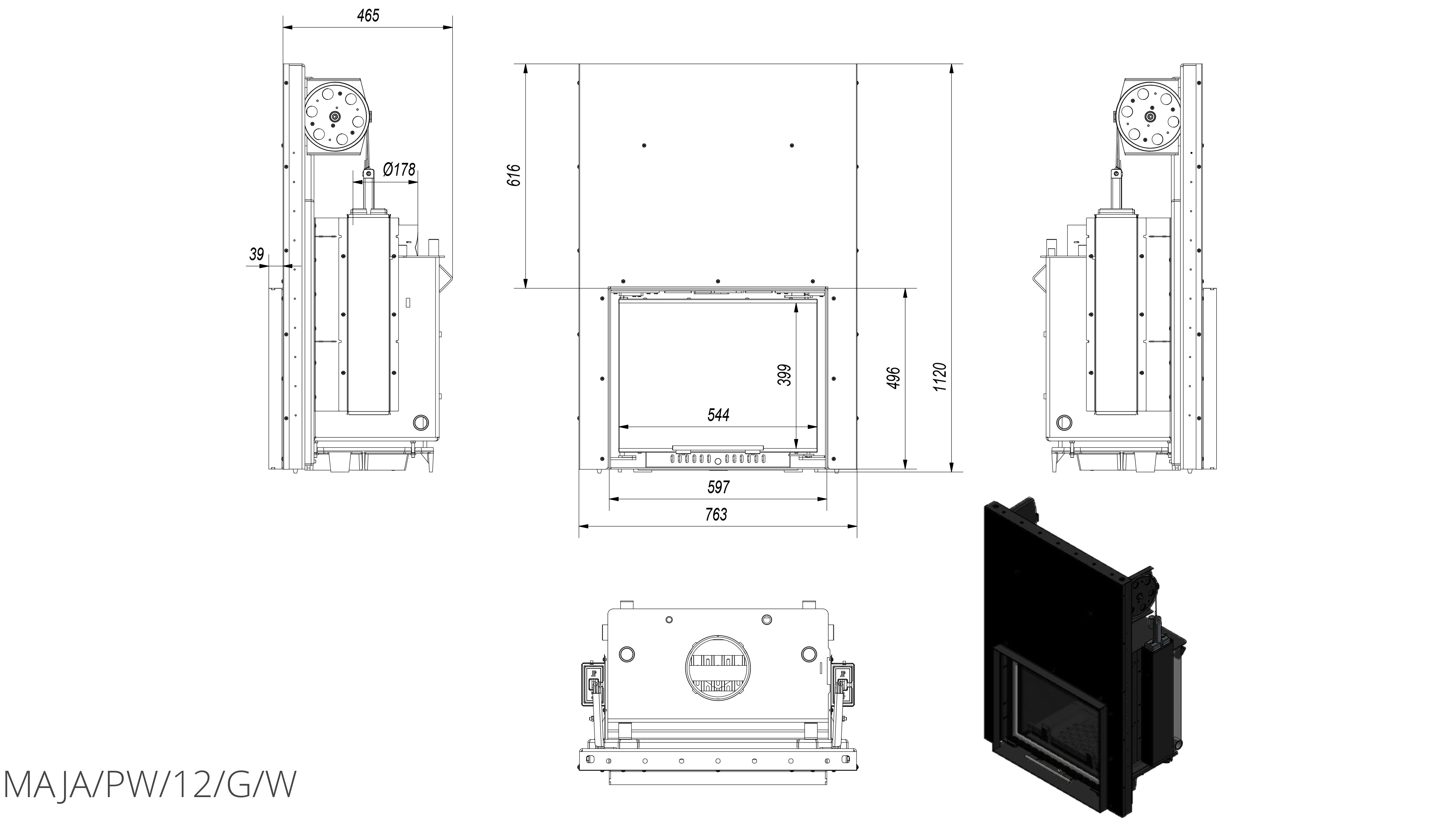 Каминная топка с водяным контуром Kratki Maja/PW/12/G/W (гильотина), в которой используемые технологии и материалы создают эффективную, экономичную и экологическую топку с высокой эффективностью.