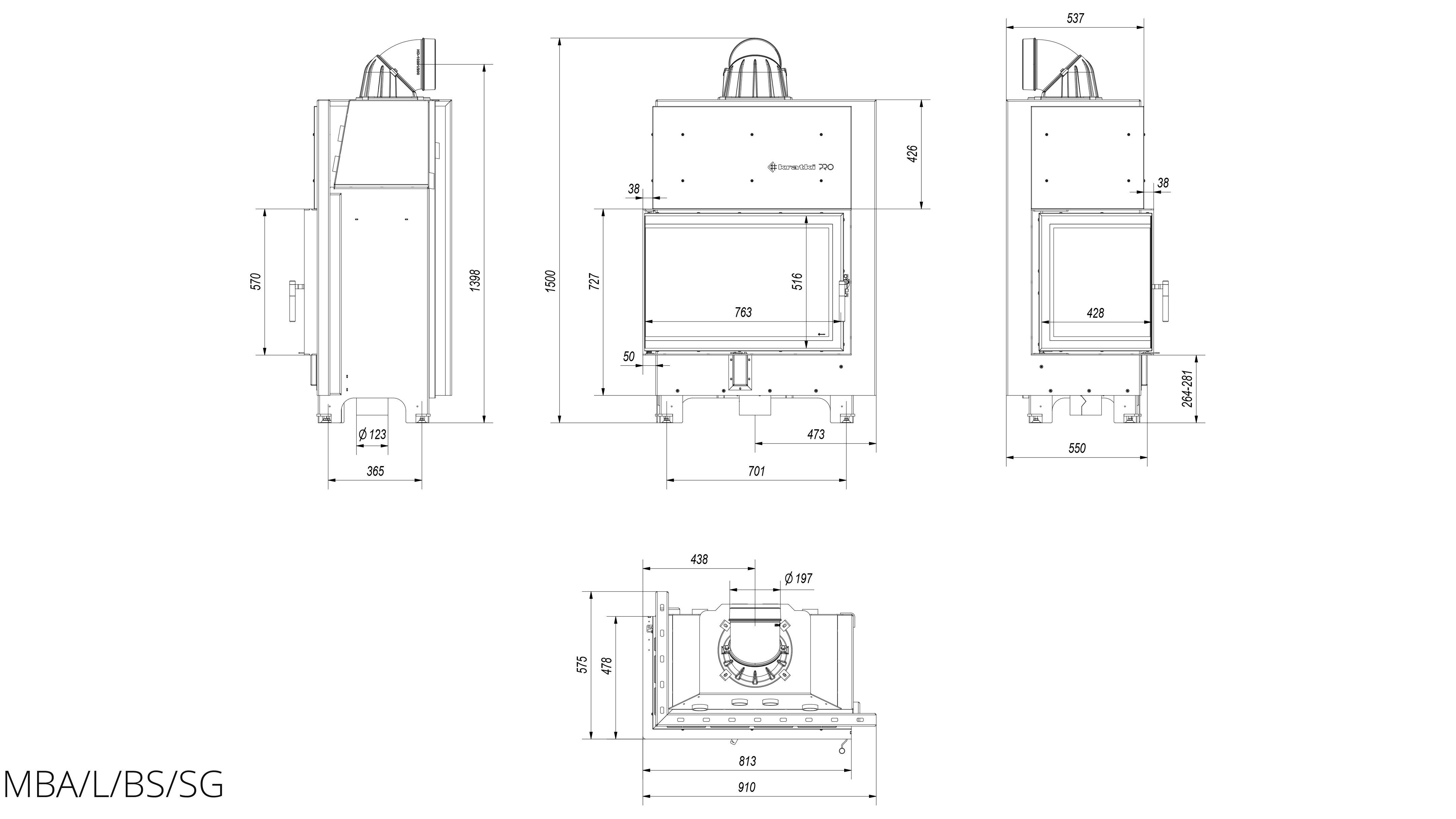 Каминная топка Kratki MBA/L/BS/SG