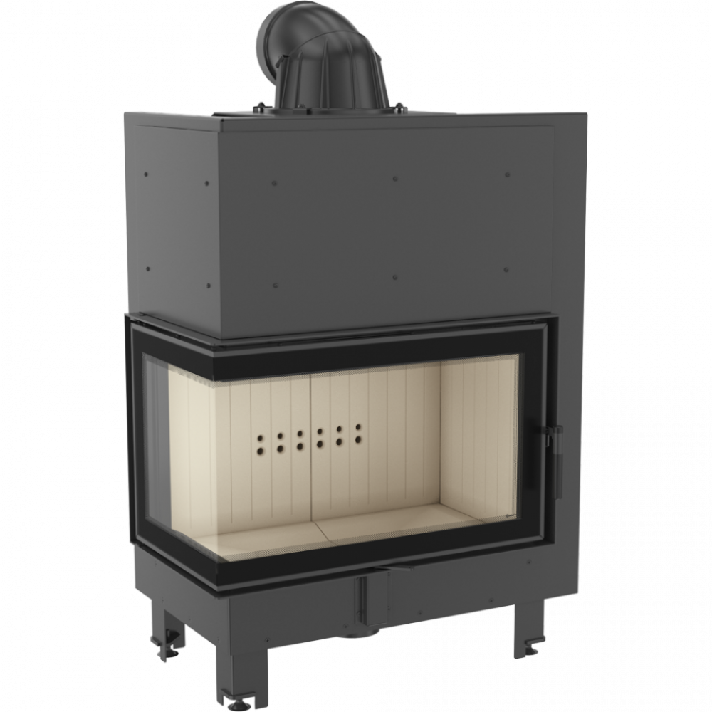 Угловая каминная топка Kratki MBO/L/BS (Г-образное стекло слева) – это популярная модель стальных очагов от польского производителя, которая обладает высокой номинальной мощностью – 15 кВт. Внутренняя камера сгорания обшита современным керамическим материалом, который положительно влияет на увеличение теплоотдачи и увеличивает коэффициент полезного действия прибора до 83 %.