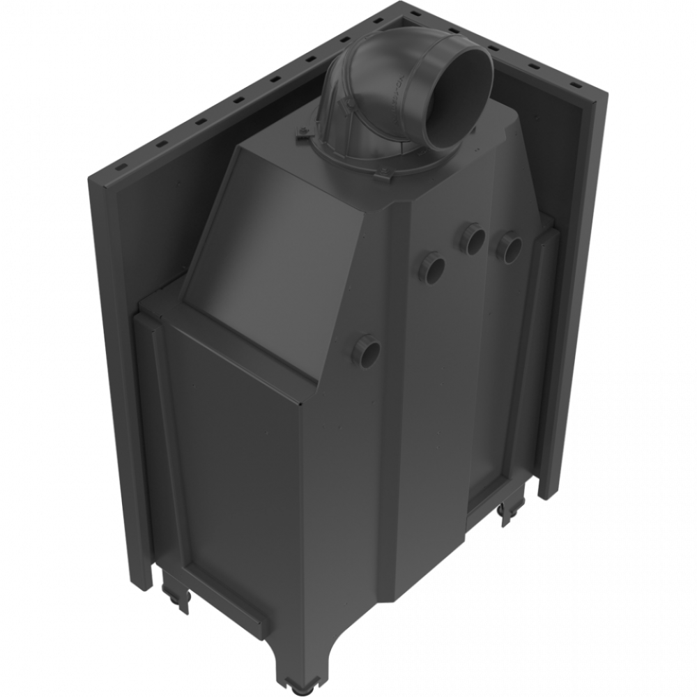 - Высокий переход из камина в дымоход и размещены поперек водяные дефлекторы увеличивают поверхность теплообмена между топкой и окружающей средой. Понижение температуры дымовых газов приводит к увеличению мощности устройства.